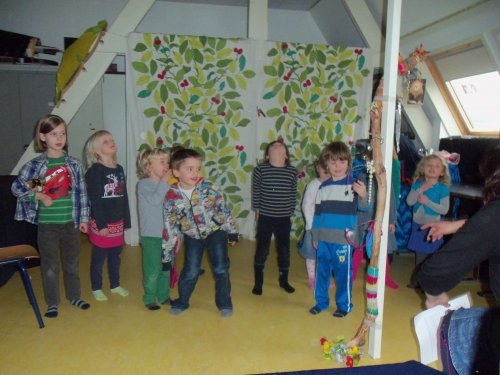 4.2 Kleuters doen mee aan de vertelpantomime.